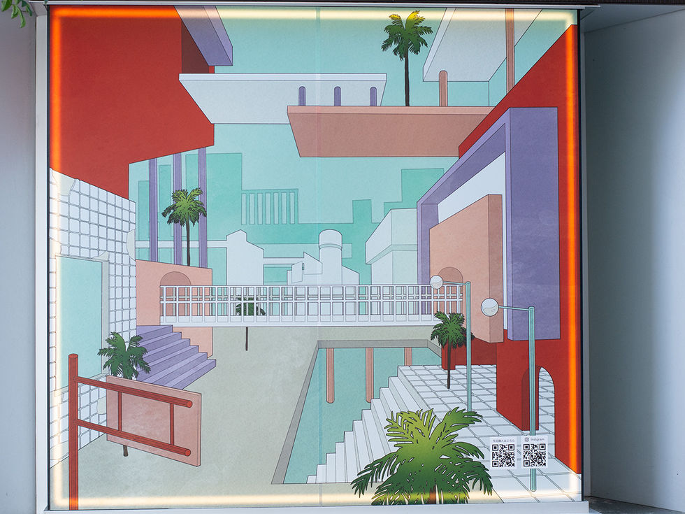 渋谷ヒカリエ裏通りにあるショーウィンドウにイラストレーターの作品が展示されるプロジェクトが始まりました。初回のイラストレーターとしてイラストを展示していただきました。